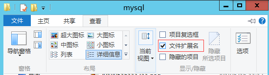 在系統(tǒng)窗口的“查看”中將“文件擴(kuò)展名”勾上,便于確保my.ini文件擴(kuò)展名正確性,如下圖: