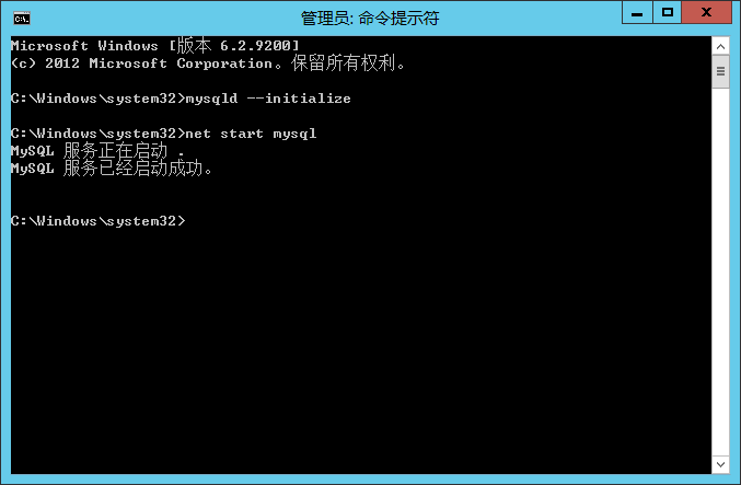 初始化MySQL輸入命令 “ mysqld --initialize ” ,初始化完成后就可以啟動(dòng)我們的MySQL服務(wù)了,鍵入命令 “ net start mysql ” ,啟動(dòng)成功后如下圖: