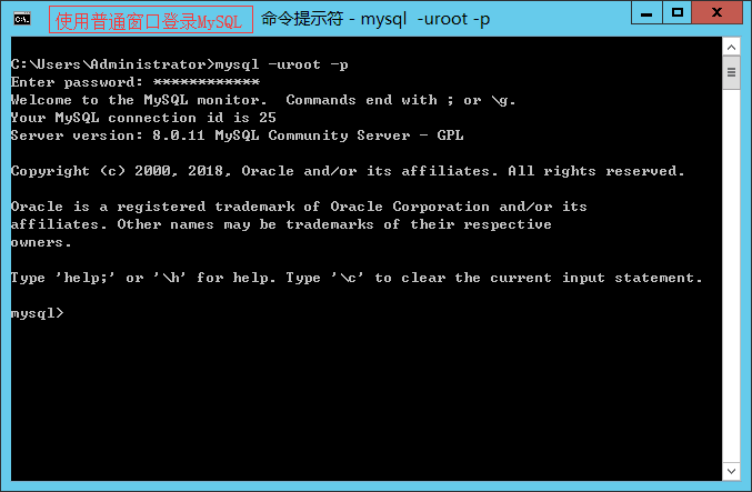 MySQL密碼修改完成后,退出超級(jí)管理員,使用普通登錄,如下圖: