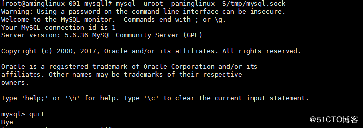 方式2:使用socket(前提是my.conf里面配置有sock),這種情況只適合在本機(jī)使用。