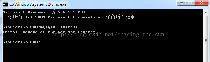 如果直接運(yùn)行cmd的話,輸入mysqld -install時會出現(xiàn)因?yàn)闄?quán)限不夠而出現(xiàn)錯誤:Install/Remove of theService Denied!