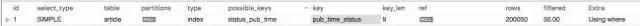 好吧,我也不知道,把status和pub_time再建個聯(lián)合索引status_pub_time,這次where條件在前,explain沒filesort了,但是這個index卻沒有被使用,它勾搭出了pub_time_status。搞不懂啊