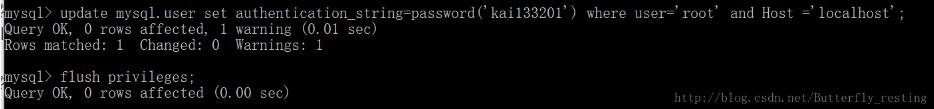接著輸入:update mysql.user set authentication_string=password('你想輸入的密碼') where user='root' and Host='localhost'; 然后接著再輸入: flush privileges;