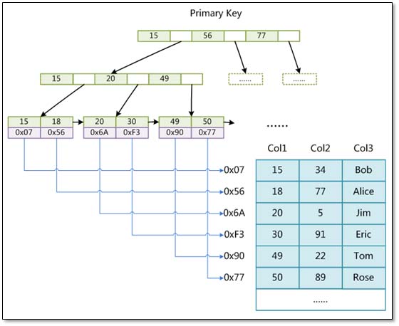 主鍵索引采用聚集索引(索引的數(shù)據(jù)域存儲(chǔ)數(shù)據(jù)文件本身),輔索引的數(shù)據(jù)域存儲(chǔ)主鍵的值;因此從輔索引查找數(shù)據(jù),需要先通過(guò)輔索引找到主鍵值,再訪問(wèn)輔索引;最好使用自增主鍵,防止插入數(shù)據(jù)時(shí),為維持B+樹結(jié)構(gòu),文件的大調(diào)整。