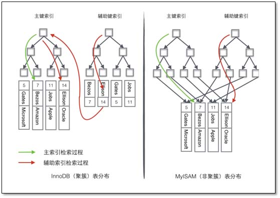 兩種索引數(shù)據(jù)查找過(guò)程如下: