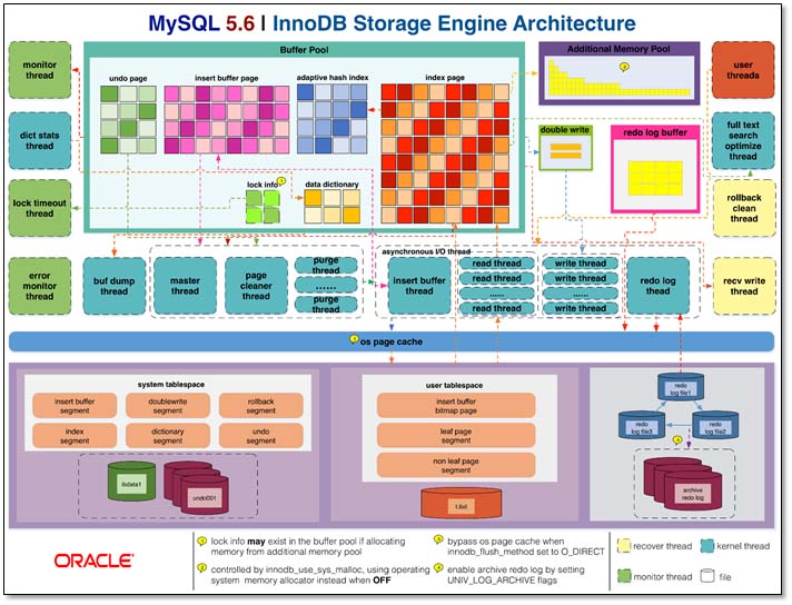 a) 事務(wù)安全(遵從ACID) b) MVCC(Multi-Versioning Concurrency Control,多版本并發(fā)控制) c) InnoDB行級(jí)鎖 d) 支持外鍵引用完整性約束 e) 出現(xiàn)故障后快速自動(dòng)恢復(fù)(crash safe recovery) f) 用于在內(nèi)存中緩存數(shù)據(jù)和索引的緩沖區(qū)池(buffer pool(data buffer page log buffer page) 、undo buffer page) g) 大型數(shù)據(jù)卷上的最大性能 h) 將對(duì)表的查詢與不同存儲(chǔ)引擎混合 i) Oracle樣式一致非鎖定讀取(共享鎖) j) 表數(shù)據(jù)進(jìn)行整理來(lái)優(yōu)化基于主鍵的查詢(聚集索引)