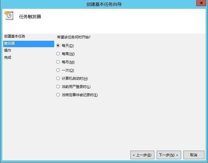 點(diǎn)擊下一步之后,我們需要設(shè)定任務(wù)的執(zhí)行頻率,我選擇的是“每天”: