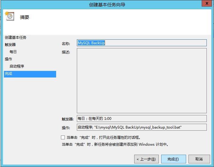 至此,在Windows環(huán)境下自動備份MySQL的設(shè)置就全部完成了。