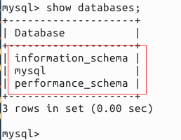 showdatabases;注意分號(hào)不能少,如下圖中顯示系統(tǒng)自帶的database。