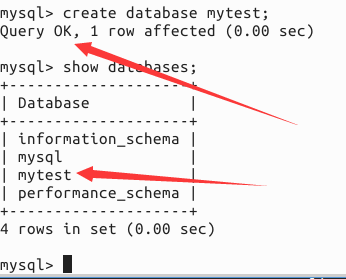2.3 創(chuàng)建數(shù)據(jù)庫(kù):create database mytest;這樣就創(chuàng)建了一個(gè)數(shù)據(jù)庫(kù)B,庫(kù)名叫mytest.