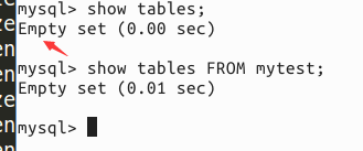 2.7顯示當(dāng)前數(shù)據(jù)庫(kù)中的表C,有下面兩種方式。a:showtables;b:showtablesFROMmytest;.其中mytest是我們建立的數(shù)據(jù)庫(kù)。