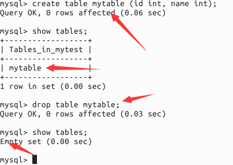 createtablemytable(idint,nameint);