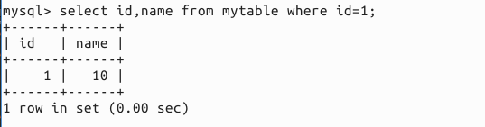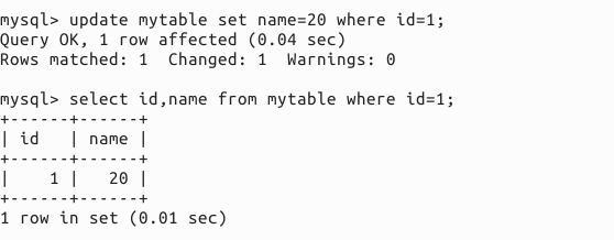 2.11 表中數(shù)據(jù)的更新,update mytable set name=20 where id=1;