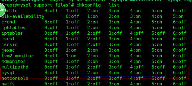 如果看到mysql的服務(wù),并且3,4,5都是on的話則成功,如果是off,則鍵入