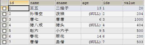SELECT * FROM (SELECT * FROM table_a a INNER JOIN table_b b ON a.id=b.ids UNION ALL SELECT 8 id,'白龍馬' `name`,'小白' sname,'1000' age ,8 ids, 27 `value` UNION ALL SELECT 9 id,'沙悟凈' `name`,'卷簾將軍' sname,'2000' age ,9 ids, 289 `value` )A