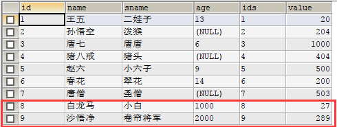 第二步:發(fā)現(xiàn)數(shù)據(jù)庫中沒有小白龍和沙悟凈,需要添加上: