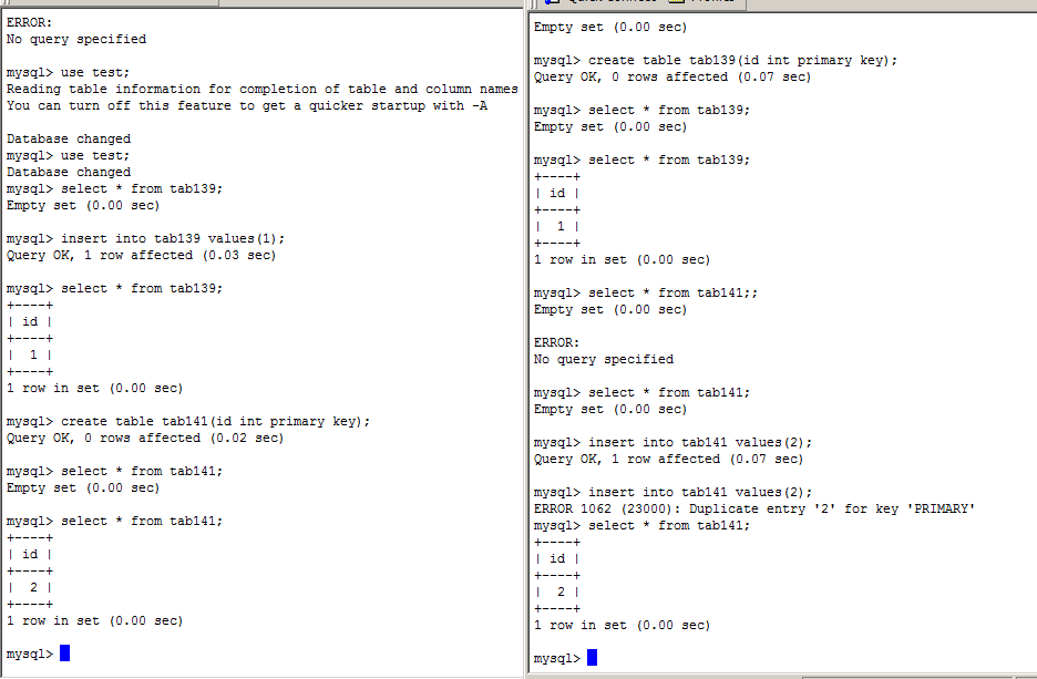 create table tab141(id int primary key); create table tab139(id int primary key);