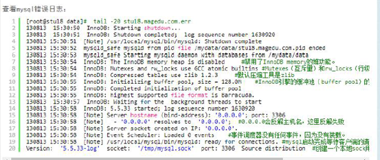 錯(cuò)誤日志信息可以自己進(jìn)行配置的,錯(cuò)誤日志所記錄的信息是可以通過logerror和log-warnings來(lái)定義的,其中l(wèi)og-err是定義是否啟用錯(cuò)誤日志的功能和錯(cuò)誤日志的存儲(chǔ)位置,log-warnings是定義是否將警告信息也定義至錯(cuò)誤日志中。默認(rèn)情況下錯(cuò)誤日志大概記錄以下幾個(gè)方面的信息:服務(wù)器啟動(dòng)和關(guān)閉過程中的信息(未必是錯(cuò)誤信息,如mysql如何啟動(dòng)InnoDB的表空間文件的、如何初始化自己的存儲(chǔ)引擎的等等)、服務(wù)器運(yùn)行過程中的錯(cuò)誤信息、事件調(diào)度器運(yùn)行一個(gè)事件時(shí)產(chǎn)生的信息、在從服務(wù)器上啟動(dòng)服務(wù)器進(jìn)程時(shí)產(chǎn)生的信息。