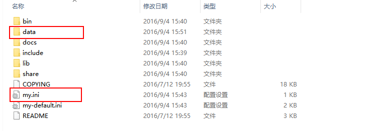 1. 第一次解壓,data文件夾 和 my.ini 是沒(méi)有的。data文件夾我們可以通過(guò)mysql工具自動(dòng)初始化,所以不要自己創(chuàng)建。