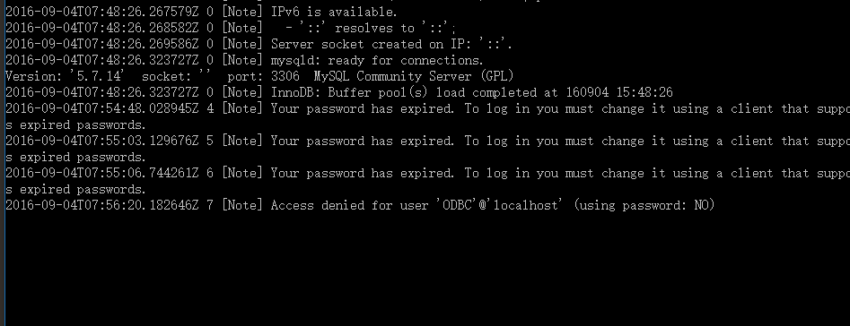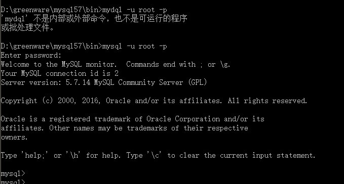 首先關(guān)掉剛剛啟動(dòng)的服務(wù),可以 net stop mysql 或者自己在服務(wù)中去點(diǎn)停止。然后還是在 mysql_root\bin 目錄下執(zhí)行:mysqld --defaults-file="D:\greenware\mysql57\my.ini" --console --skip-grant-tables ,這里的配置文件就是我們剛剛加進(jìn)去的配置文件目錄。 然后會(huì)輸出很多東西,最后請(qǐng)不要關(guān)閉這個(gè)控制臺(tái)