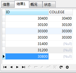 在上邊那個(gè)結(jié)果集中,c.ID和a.COLLEGE是一一對(duì)應(yīng)的,此時(shí),count(*)的數(shù)據(jù)是總行數(shù),因?yàn)槲覀兊闹鞅硎菍W(xué)院表,所以這個(gè)數(shù)據(jù)和count(c.ID)的數(shù)據(jù)是一樣的。