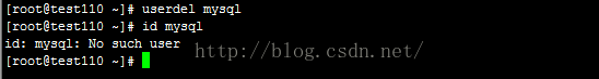 (2)執(zhí)行userdel mysql命令刪除MySQL用戶及用戶組