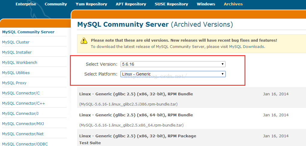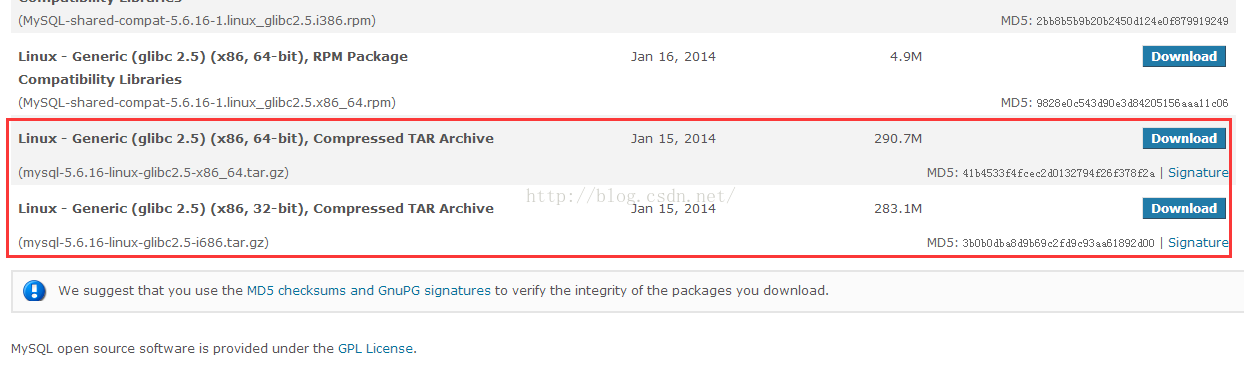 (2)把頁面拉到底部,64位系統(tǒng)下載Linux - Generic (glibc 2.5)(x86, 64-bit),32位系統(tǒng)下載Linux- Generic (glibc 2.5) (x86, 32-bit)