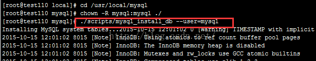 (5)執(zhí)行命令:./scripts/mysql_install_db--user=mysql 安裝數(shù)據(jù)庫