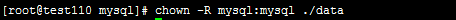 (7)執(zhí)行命令:chown -R mysql:mysql ./data修改當前data目錄擁有者為mysql用戶