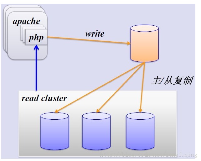 MySQL的主從復(fù)制解決了數(shù)據(jù)庫的讀寫分離,并很好的提升了讀的性能,其圖如下: