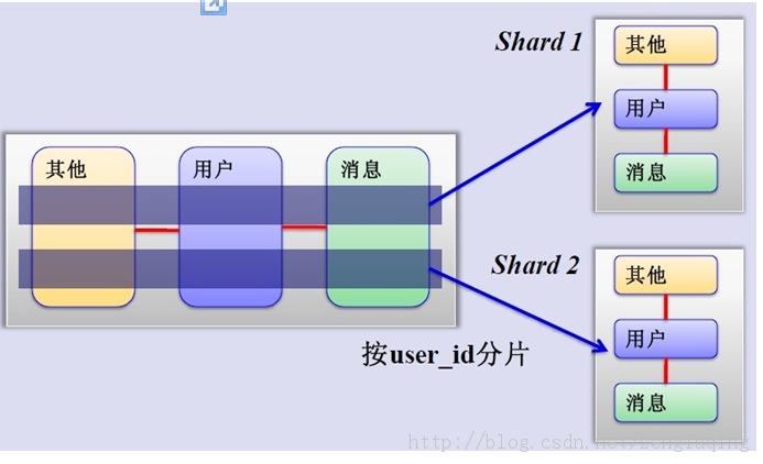 這是一個(gè)非常好的思路,將用戶按一定規(guī)則(按id哈希)分組,并把該組用戶的數(shù)據(jù)存儲(chǔ)到一個(gè)數(shù)據(jù)庫分片中,即一個(gè)sharding,這樣隨著用戶數(shù)量的增加,只要簡單地配置一臺(tái)服務(wù)器即可,原理圖如下: