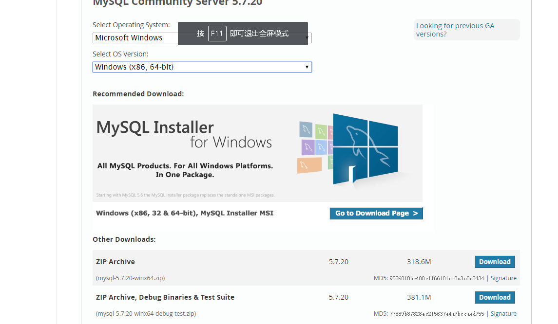以我所選版本為例(免安裝版),選擇MYSQL Community Server 然后在右邊選擇你所對(duì)應(yīng)的版本 我的是64位 下載相應(yīng)的zip版本