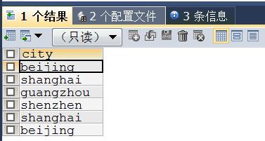 #數(shù)據(jù)篩選(不等于) SELECT * FROM data1 WHERE city !='beijing';