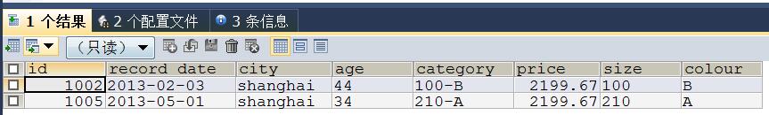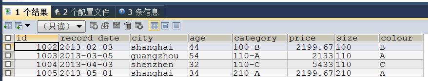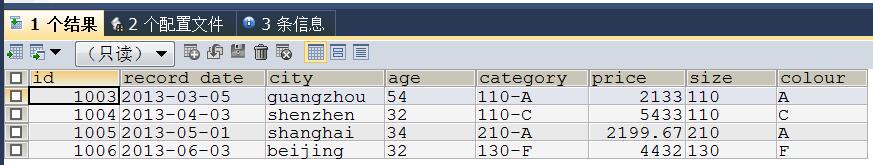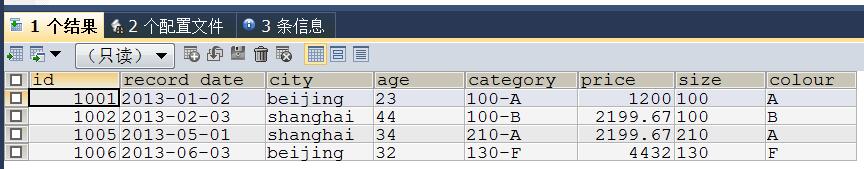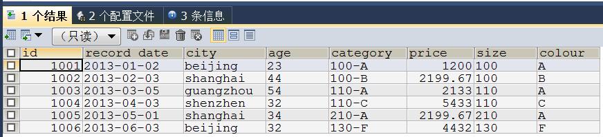 #查看原始數(shù)據(jù)表 SELECT * FROM data1;