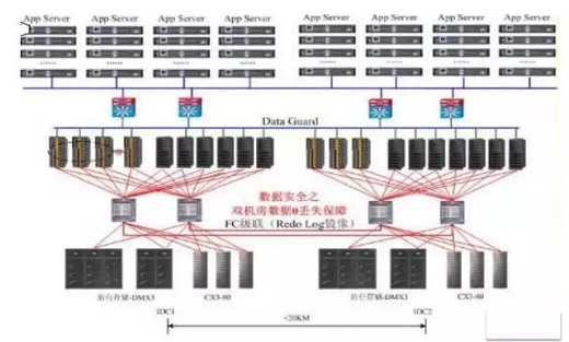 Oracle的解決方案在阿里快速發(fā)展時(shí)期支撐起了核心業(yè)務(wù)的需求。大概是這樣的架構(gòu)體系,看起來很龐大。里面的RAC算是一個(gè)貴族,用昂貴的商業(yè)存儲,網(wǎng)絡(luò)帶寬要求極高,前端大量的小機(jī)業(yè)務(wù)還有不菲的licence費(fèi)用。非常典型的IOE的經(jīng)典架構(gòu)。