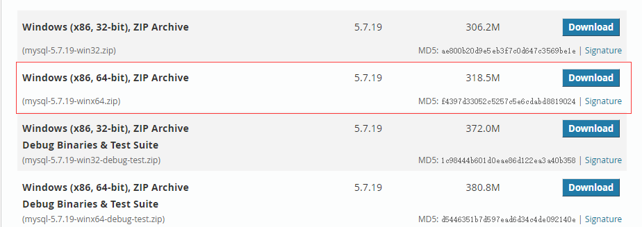 以MySQL5.7.19安裝為例,先進(jìn)行下載