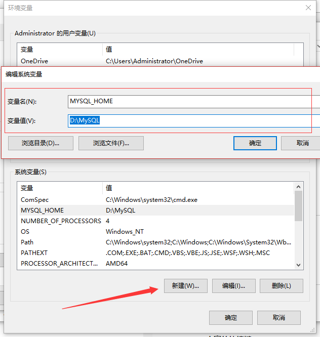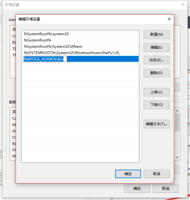 接下來添加Path,選擇Path編輯,新增一條: %MYSQL_HOME%\bin