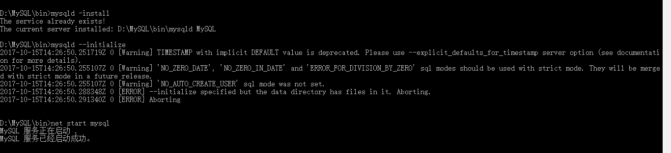 cd /dD:\MySQL\bin 進(jìn)入bin目錄。要進(jìn)入bin目錄!圖上沒寫! 然后按圖中命令敲下去。