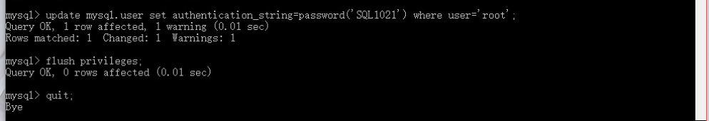 mysql>update mysql.user set anthentication_string=password('你的密碼') where user='root';