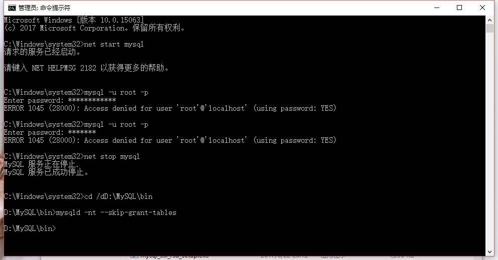 重新打開一個管理員命令提示符輸入mysql進(jìn)入重新改密碼就OK了。
