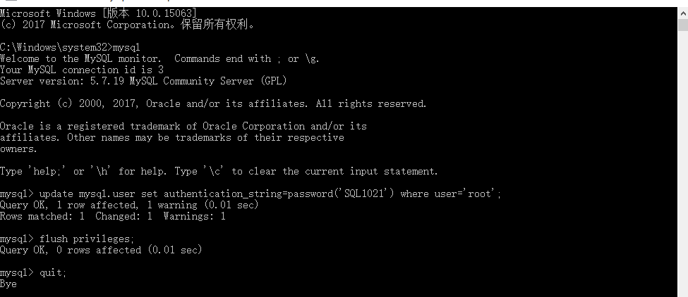 :MySQL5.7.19