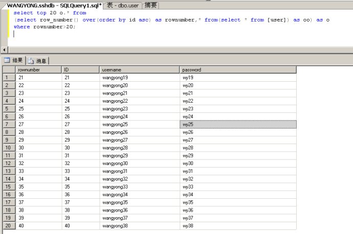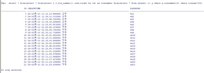 查詢(1-21)這20條記錄*****(沒有ID=6的記錄,所以查詢到的最大ID為21)