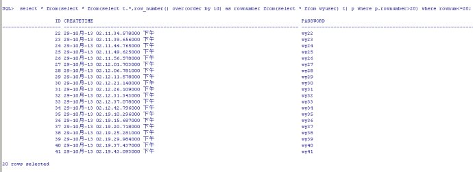 select*from(selecta.*,ROWNUMrn from(sql)a whereROWNUM<=(firstIndex+pageSize))wherern>firstIndex