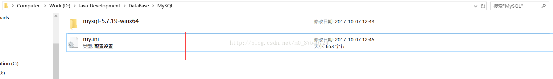 如上圖所示解壓后并沒有my.ini文件,需要自己編寫。