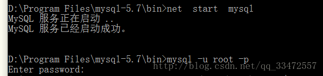 9.然后再次啟動(dòng)mysql 然后用命令 mysql –u root –p 進(jìn)入mysql管理界面(密碼可為空)