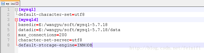 在mysql解壓目錄新建一個(gè)my.ini的配置文件并做如下配置