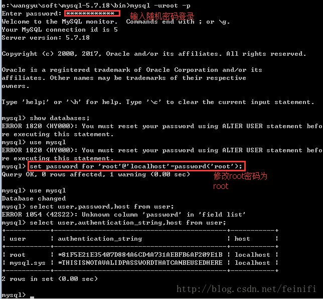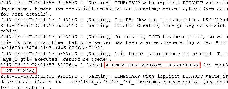4、使用root用戶登錄mysql,密碼使用初始化過程中產(chǎn)生的隨機(jī)密碼。