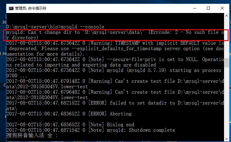 這時(shí)候報(bào)錯(cuò)了,提示無(wú)法啟動(dòng),3534 ,我們通過(guò) mysqld --console命令來(lái)查看錯(cuò)誤日志