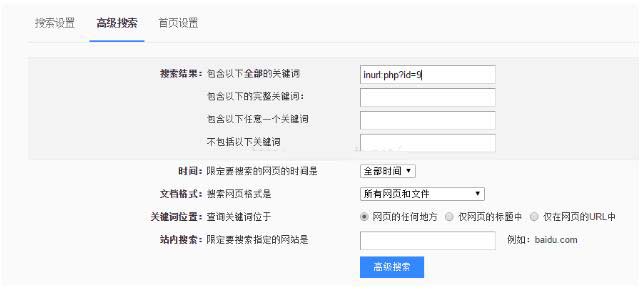方法二:利用百度的高級搜索也可以,比如搜索url如.asp?id=9如下所示: