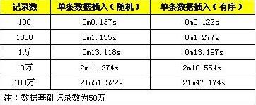 從測(cè)試結(jié)果可以看到,合并數(shù)據(jù)+事務(wù)的方法在較小數(shù)據(jù)量時(shí),性能提高是很明顯的,數(shù)據(jù)量較大時(shí)(1千萬以上),性能會(huì)急劇下降,這是由于此時(shí)數(shù)據(jù)量 超過了innodb_buffer的容量,每次定位索引涉及較多的磁盤讀寫操作,性能下降較快。而使用合并數(shù)據(jù)+事務(wù)+有序數(shù)據(jù)的方式在數(shù)據(jù)量達(dá)到千萬級(jí) 以上表現(xiàn)依舊是良好,在數(shù)據(jù)量較大時(shí),有序數(shù)據(jù)索引定位較為方便,不需要頻繁對(duì)磁盤進(jìn)行讀寫操作,所以可以維持較高的性能。
